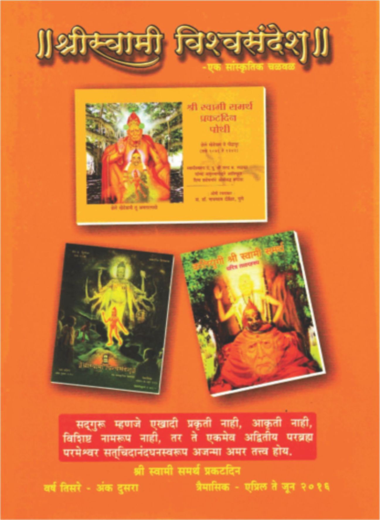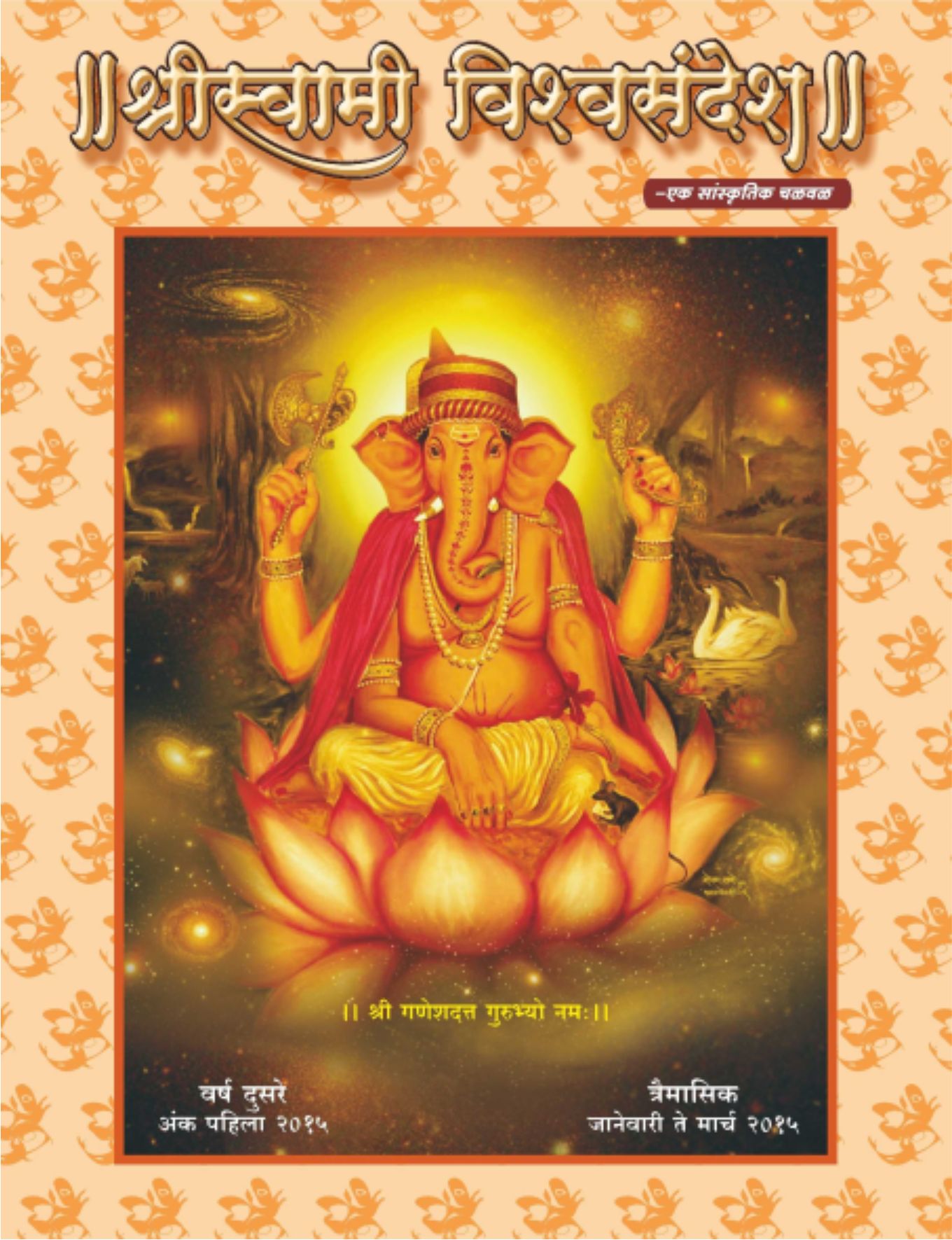 “श्रीस्वामी विश्वसंदेश त्रैमासिकाच्या मदतीच्या दृष्टीने जास्तीत-जास्त भक्तांनी स्वामी सेवा म्हणून त्रेमासिकासाठी रु.४०० व दिवाळी अंकासाठी रु.५०० प्रतीपृष्ठ देणगीमुल्य देऊन पृष्ठ सौजन्याची नोंदणी करावी.